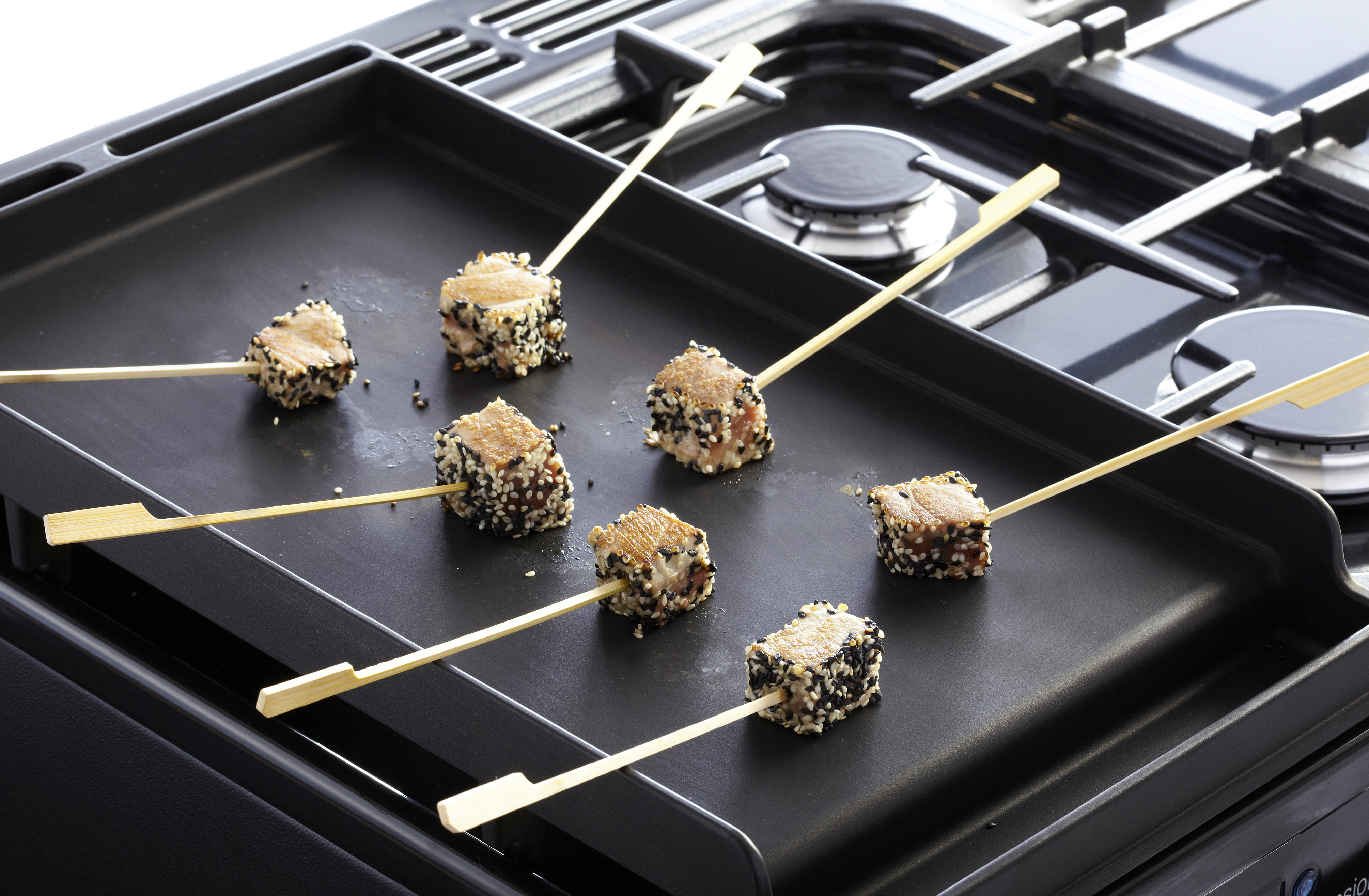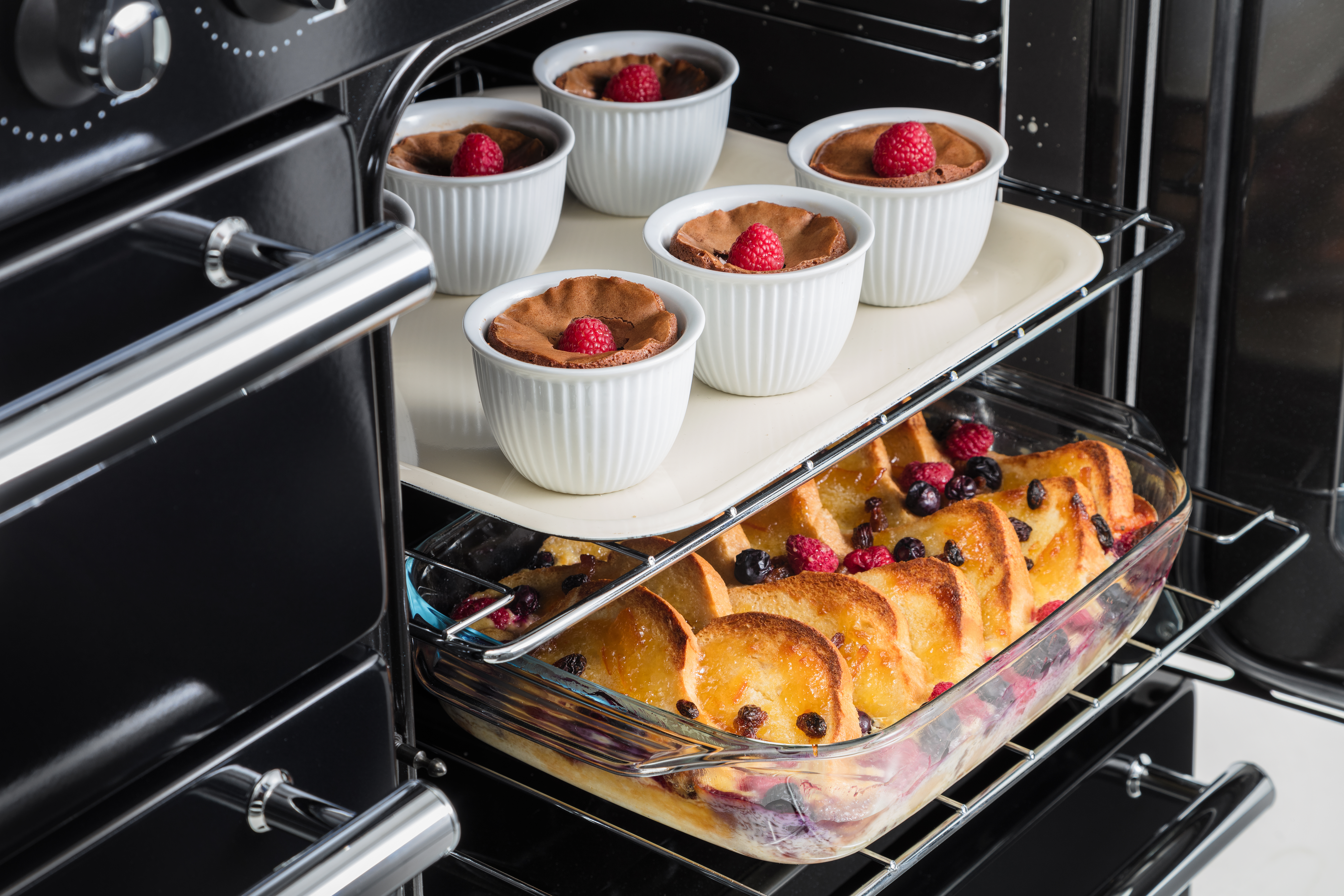 Both come with telescopic runners to make checking and removing dishes easier and safer while the 110cm model above also boasts a second, 80-litre oven.