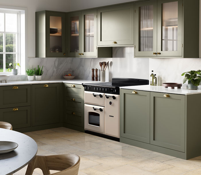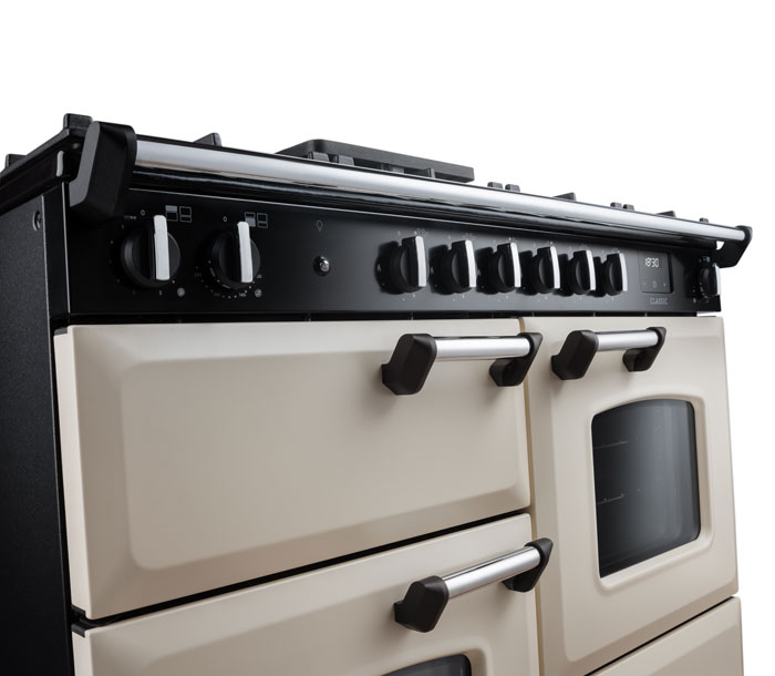 Available in 90cm, 100cm and 110cm widths, Classic arrives in Pale Cream, Gloss Black, Misty Blue or Bordeaux with a crisp Chrome trim – ready to complement painted Shaker units or create a statement in contemporary schemes.