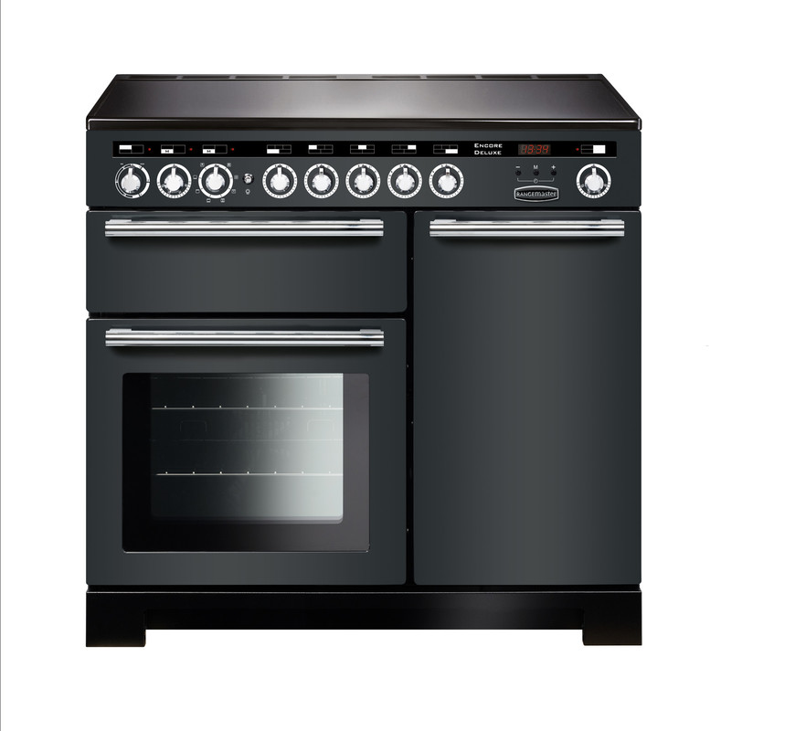 Sleek, straight-lined and contemporary, the Encore Deluxe design is available in a wide selection of sizes, fuels and colours to complement or contrast any kitchen scheme. The dual fuel and induction models feature large square viewing windows, linear handles and sturdy control dials. Choose from a classic Ivory, Black or Stainless Steel finish or go for something more industrial looking with the on-trend Slate or Charcoal Black colours, all of which come with a chrome trim. Dual fuel boasts hardwearing cast iron pan supports while the induction option benefits from an easy-clean glass hob.